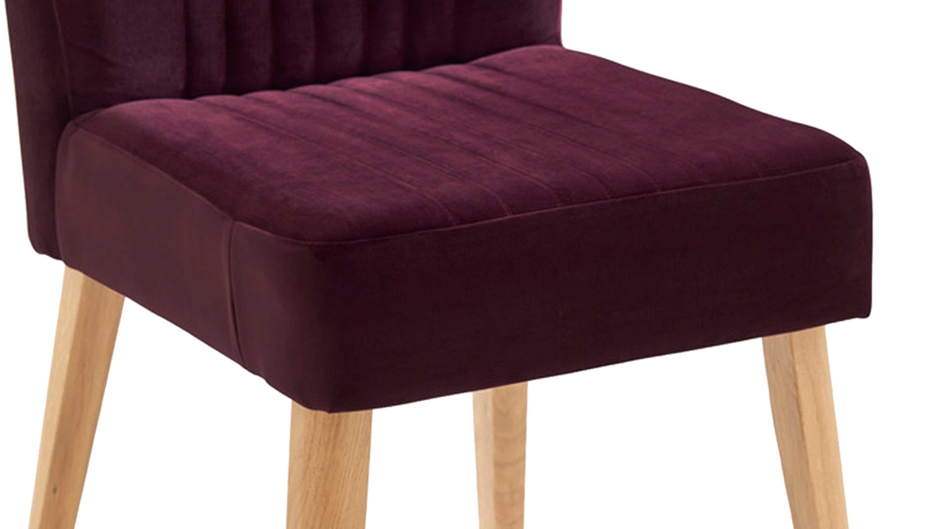 Sie lieben Rotwein? Dann ist dieser komfortable Polsterstuhl mit einem weichen, chiantifarbenen Bezug im Samtlook genau das Richtige. Raffinierte Steppnähte, die auf Sitz und Rücken angebracht sind, verleihen diesem Sitzmöbel eine interessante optische Note. Stellen Sie diesen funktionalen Polsterstuhl mit den praktischen Maßen von ca. 46 x 92 x 66 cm (BxHxT) am besten an einen Esstisch aus Eiche, denn das Holzgestell des Stuhls besteht ebenfalls aus Eiche natur.