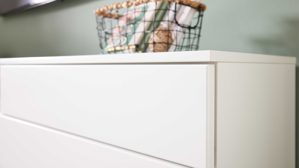Die Möbel überzeugen mit hochwertigen Melaminharz-Oberflächen, die kratzfest, UV-beständig, strapazierfähig und pflegeleicht sind – ideal, wenn du Wert auf langlebige Qualität legst. Ob Risseiche Nachbildung, Balkenbuche Nachbildung, Tonweiß matt, Grau matt oder Schilfgrün – du hast die Wahl zwischen modernen, natürlich wirkenden Farbtönen. Dank der vormontierten Korpusse gelingt der Aufbau mühelos, und mit den vierfach höhenverstellbaren Einlegeböden passt du den Stauraum ganz nach deinen Bedürfnissen an. Das griffloses Design mit Push-to-open-Funktion sorgt für ein ruhiges Gesamtbild, während die Griffe an den Glastüren stilvolle Akzente setzen.