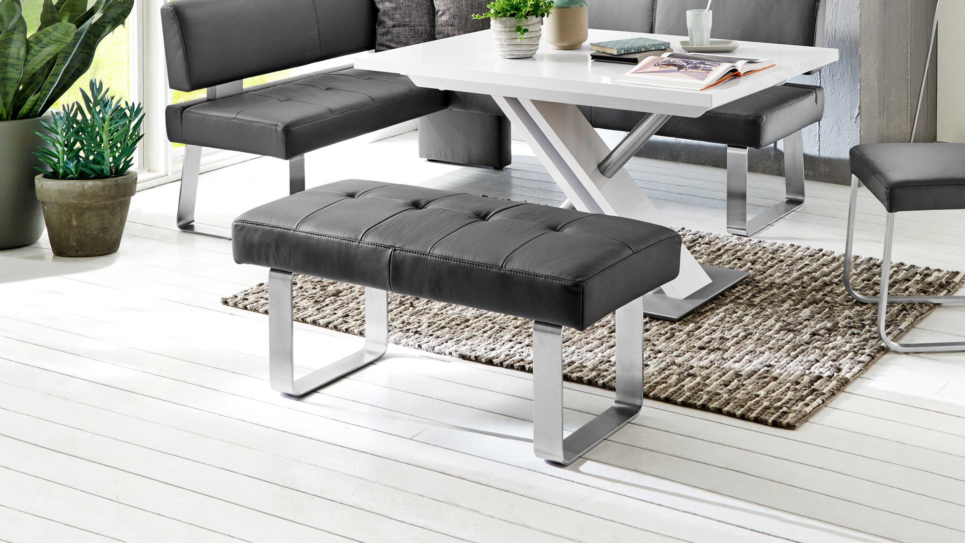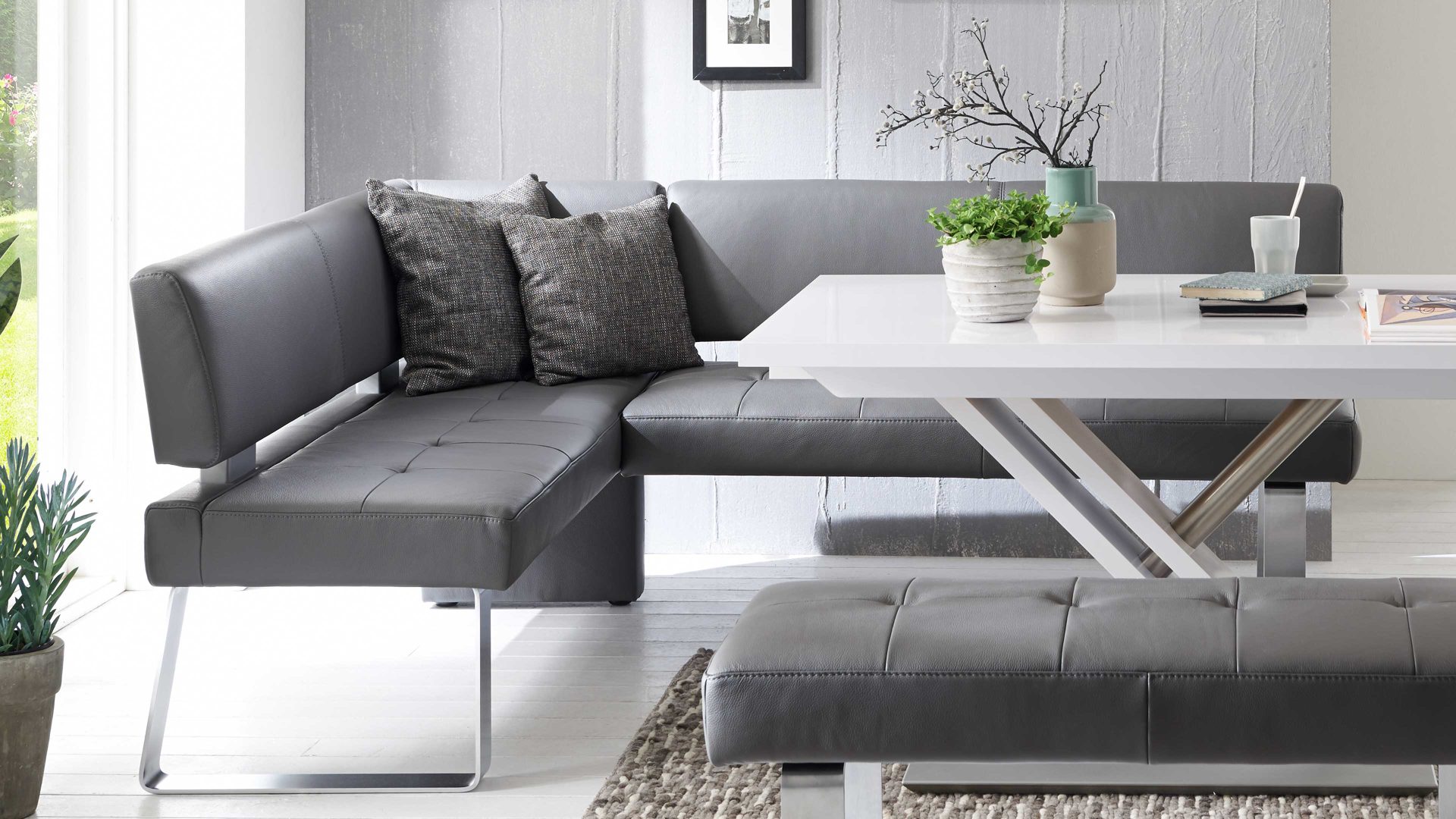 Nutzen Sie zur individuellen Gestaltung Ihrer Essecke den Typenplan, der Ihnen eine große Auswahl an Bezügen bietet. Aus der gleichen Serie sind weitere stilvolle Sitzmöbel erhältlich.