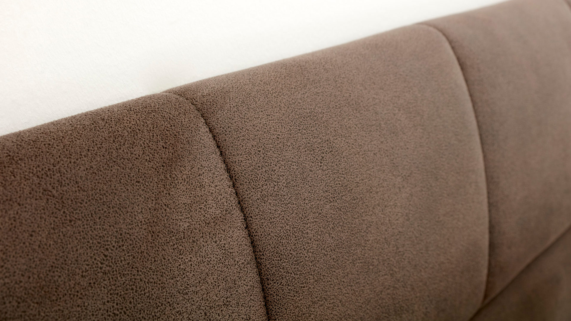 Das edle Polsterbett Malea kombiniert alufarbene Füße als schlicht-robuste Basis mit einem klassisch-braunen Stoffbezug. Zusammen sorgen die Materialien und Farben für eine moderne, elegante und auch warme Ausstrahlung. Das Polsterkopfteil mit schicker Steppung bildet einen optischen wie funktionalen Höhepunkt.