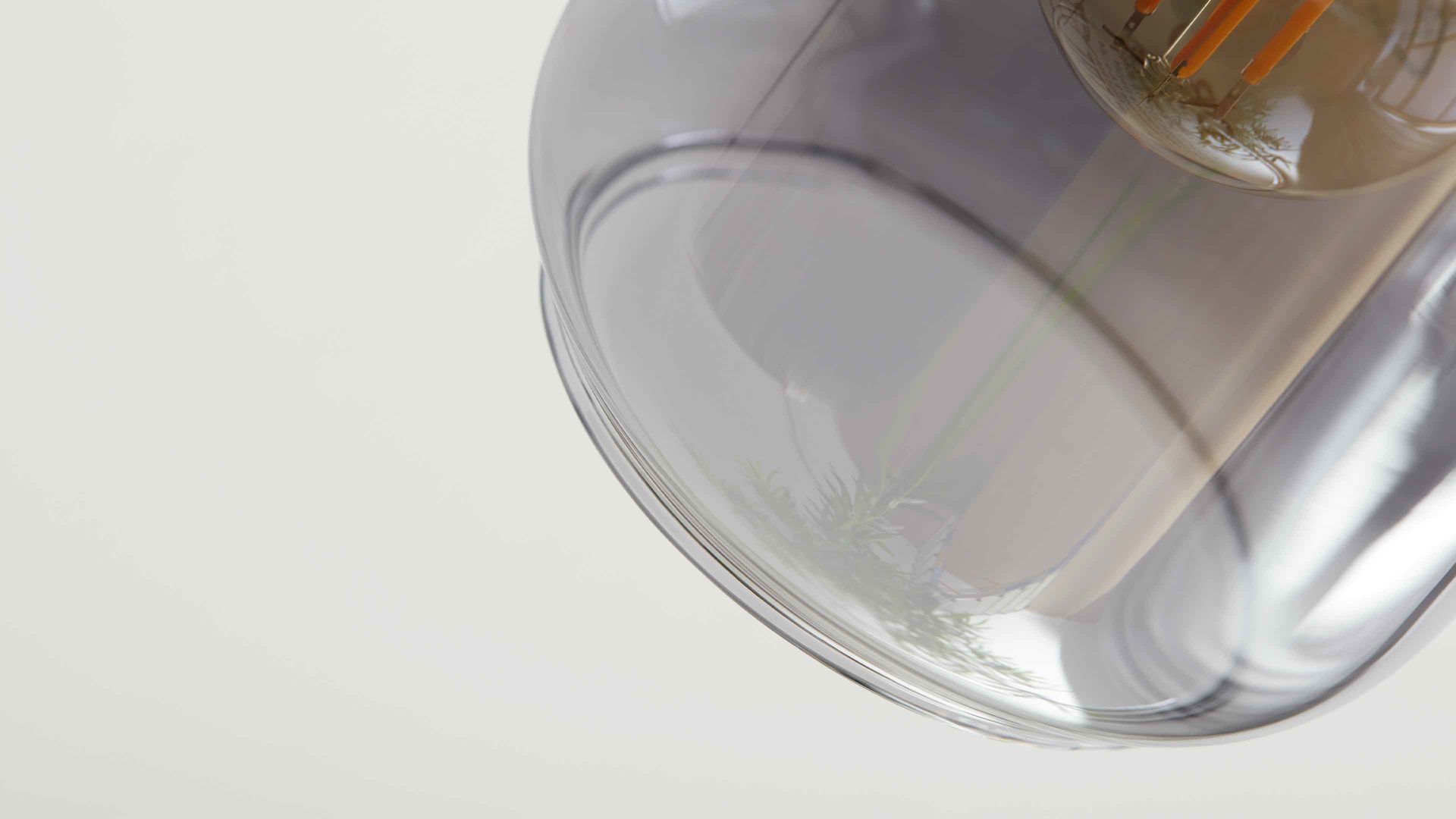 Ausgestattet mit drei E14-Fassungen (je max. 40 Watt) hast du freie Wahl bei der Lichtfarbe und Helligkeit – ideal, um die Atmosphäre nach deinen Wünschen zu gestalten. Der markante Industrial-Look mit mattem Metall und Rauchglas verleiht der Lampe ihren besonderen Charakter und macht sie zu einem echten Hingucker.