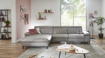 Das edle graue LongLife-Glattleder mit feiner Lederstruktur und die mattschwarzen Alufüße verleihen dem Ecksofa aus dem Polsterprogramm VS-HU1116 eine betont moderne, elegante und auch noble Ausstrahlung. Für extra hohen Sitzkomfort sorgen der voll durchgeschäumte Federkern auf einer Wellenunterfederung in Sitzhärte 2 und die Komfortschaumpolsterung in der Rückenlehne.