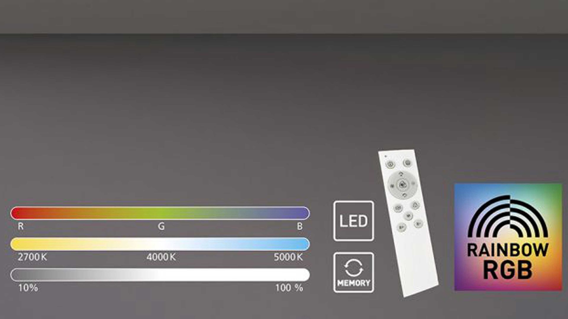 | Verstellbarkeit und Funktion: | dimmbar Fernbedienung Memoryfunktion Farbwechselfunktion CCT | Lichtmanagement | |