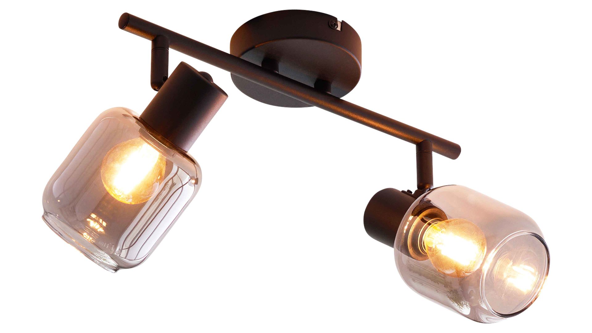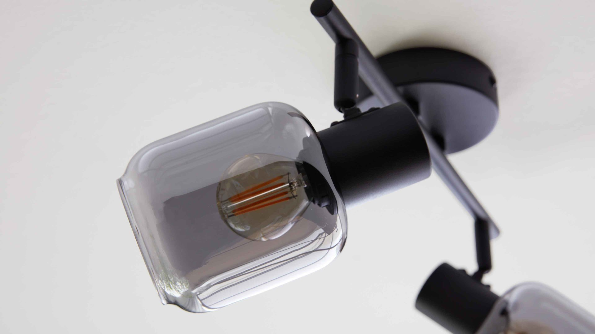 Die elegante Decken-Spotleuchte aus der Interliving Leuchten Serie 9341 verbindet urbanen Charme mit moderner Klarheit. Mattschwarzes Metall trifft auf zwei schwenkbare Rauchglas-Schirme mit Spiegeloptik – ein stilvoller Mix aus Industrial Design und funktionaler Beleuchtung. Ob im Wohnzimmer, Flur oder in kleineren Räumen – diese Leuchte setzt gezielte Lichtakzente und schafft ein edles Ambiente.