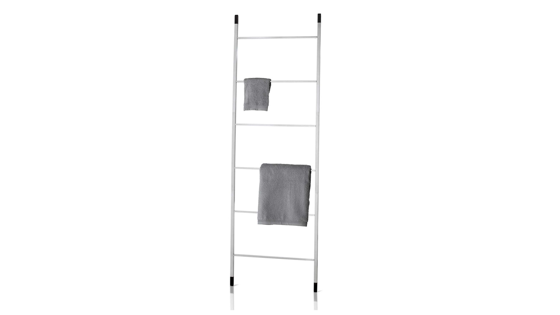 Sie haben die Wahl: Entweder Sie hängen zwei große oder mehrere kleine Handtücher auf die zwei feststehenden Stangen des Standmodells. Der Halter für Ihre Tücher steht auf einer Bodenplatte und hat die Maße von ca. 20 x 81 x 30 cm (BxHxL), womit das Modell sowohl in ein großes als auch ein kleineres Badezimmer passt.