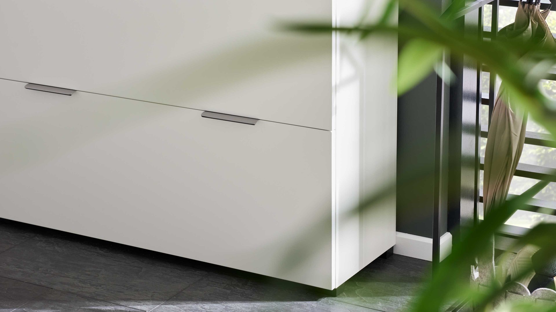 Durch seine klare Formgebung passt der Schrank perfekt in moderne und natürlich inspirierte Einrichtungskonzepte – als Schuhkommode, Dielenschrank oder stilvoller Begleiter zur Garderobe.