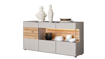 samtgrauer Lack & Balkeneiche - drei Türen, Länge ca. 182 cm