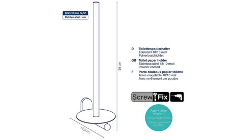 Entdecken Sie unseren eleganten schwarzen Toilettenpapierhalter Alessio aus hochwertigem Edelstahl – ein stilvoller Blickfang für Ihr Badezimmer. Mit Platz für bis zu drei Rollen bietet er nicht nur eine moderne, matte Optik, sondern auch maximale Funktionalität. Maße ca. 16 x 38 x 12 cm (BxHxT).