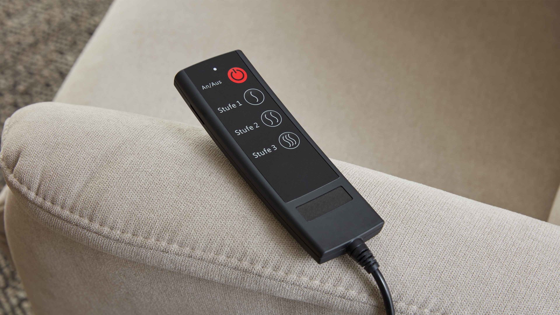 Die Funktion E ist ein praktischer Mehrpreis für die hochwertigen Relaxsessel aus der Comfortmaster-Serie CM-HU1157. Es handelt sich um elektrische Funktionen mit einem Elektromotor. Letzterer gewährleistet die automatische synchrone Verstellung der Beinauflage und Rückenlehne. Zudem umfasst der Mehrpreis eine motorische Aufstehhilfe. Zur Steuerung der elektrischen Funktionen wird Ihnen ein Handschalter mitgeliefert. Die bei den Sesseln serienmäßig integrierte Kopfpolsterverstellung mit Rasterbeschlag und Rückholfeder erfolgt manuell.