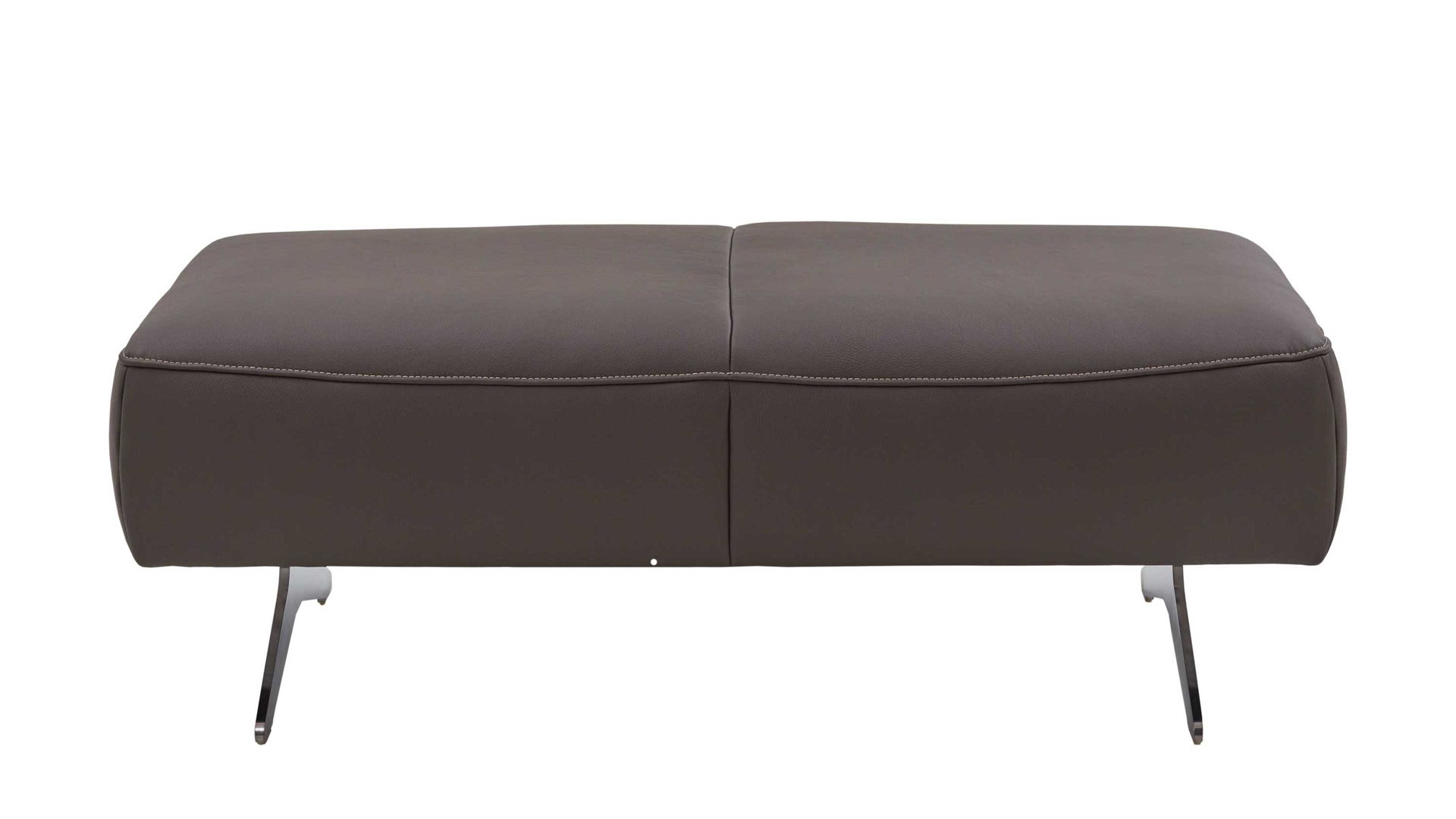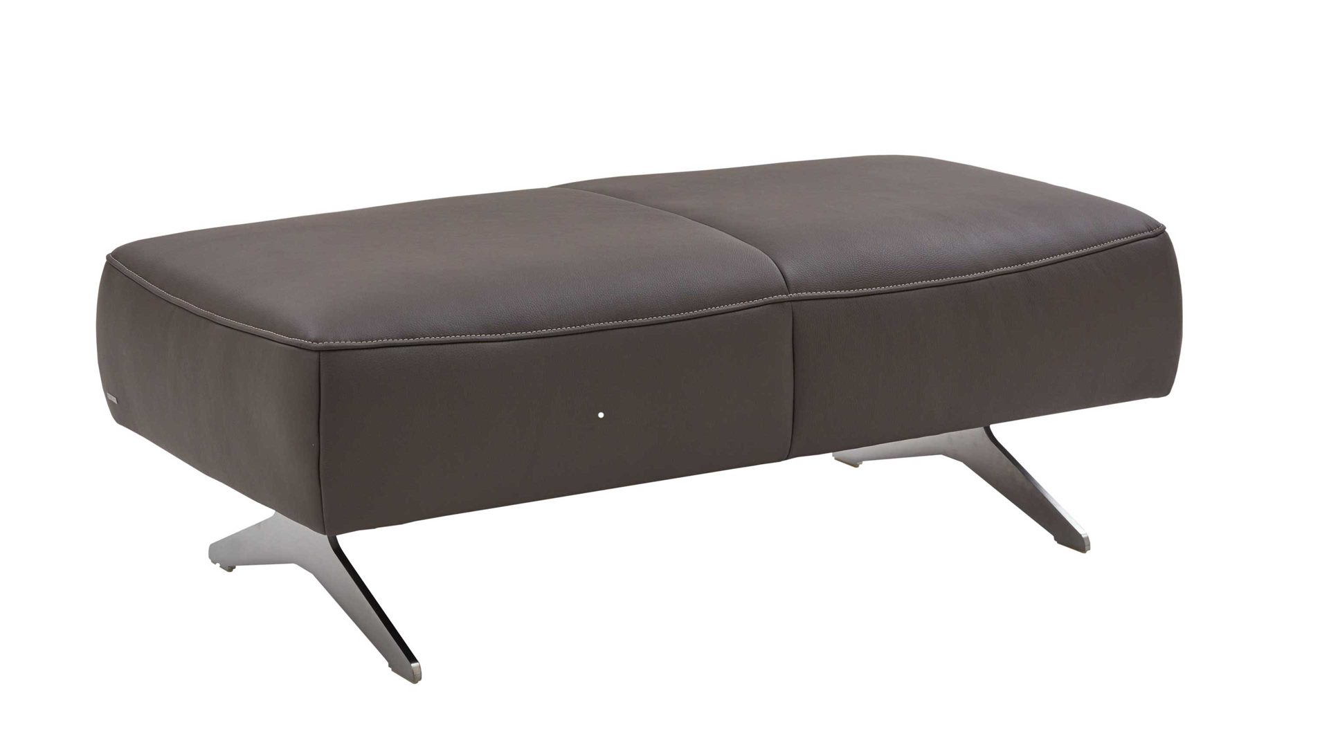 Der carbonefarbene Lederbezug verleiht dem XXL-Hocker eine elegante Ausstrahlung und lässt sie zum Blickfang in jedem Raum werden.