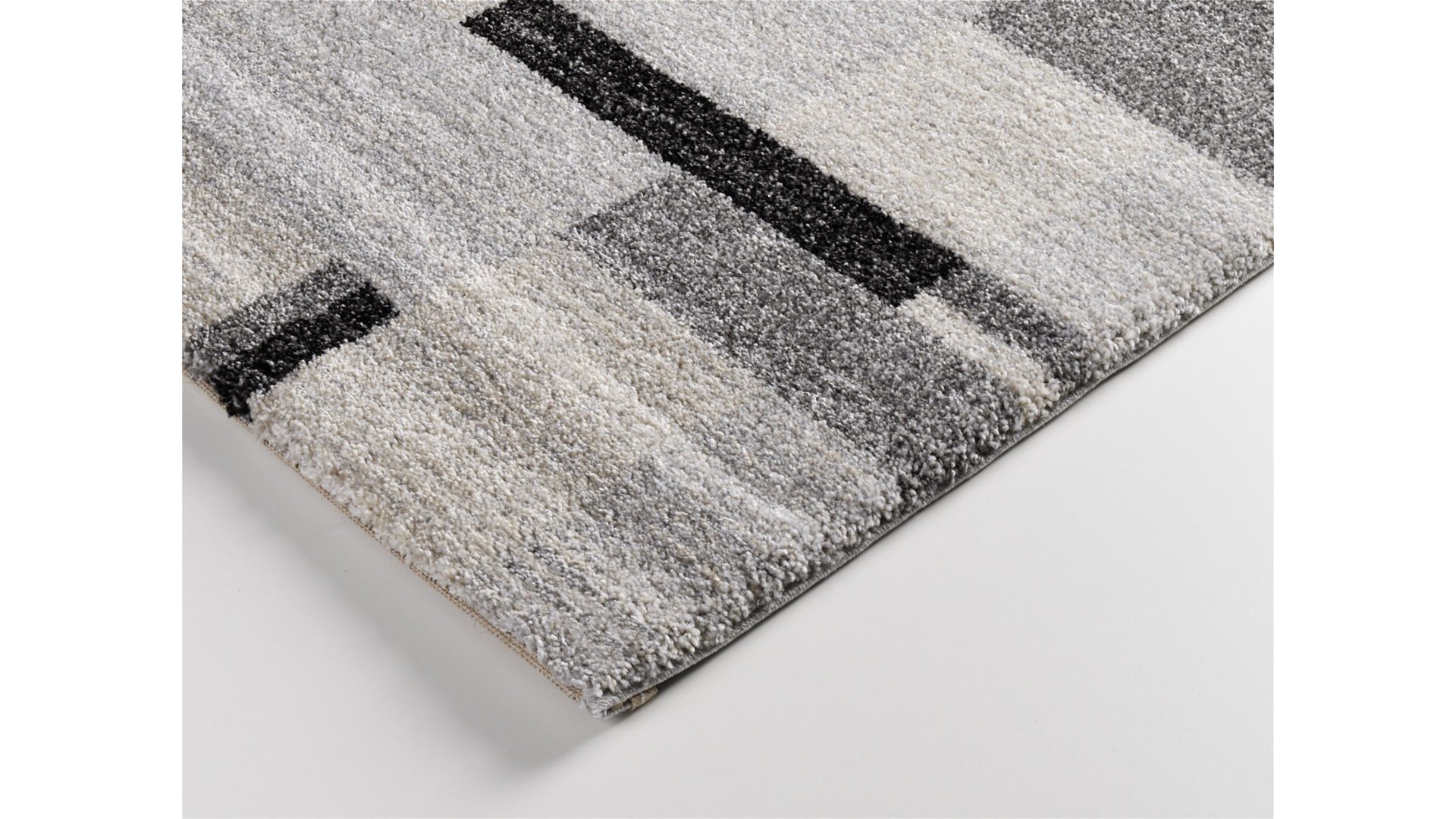 Moderne Mosaikstruktur in angenehm-dezenten Farbverläufen: Die geometrisch angeordneten Vierecke verschiedener Größe und Kolorierung dieses Wohnaccessoires sorgen für Form- und Farbenvielfalt, gleichmäßige Struktur und erzeugen ein harmonisches Karreefeld des Designerteppichs Castle Beppo. Der Webteppich gehört zu den Wohnaccessoires, die seitlich gekettelt und vor Kopf umgeschlagen sind.
