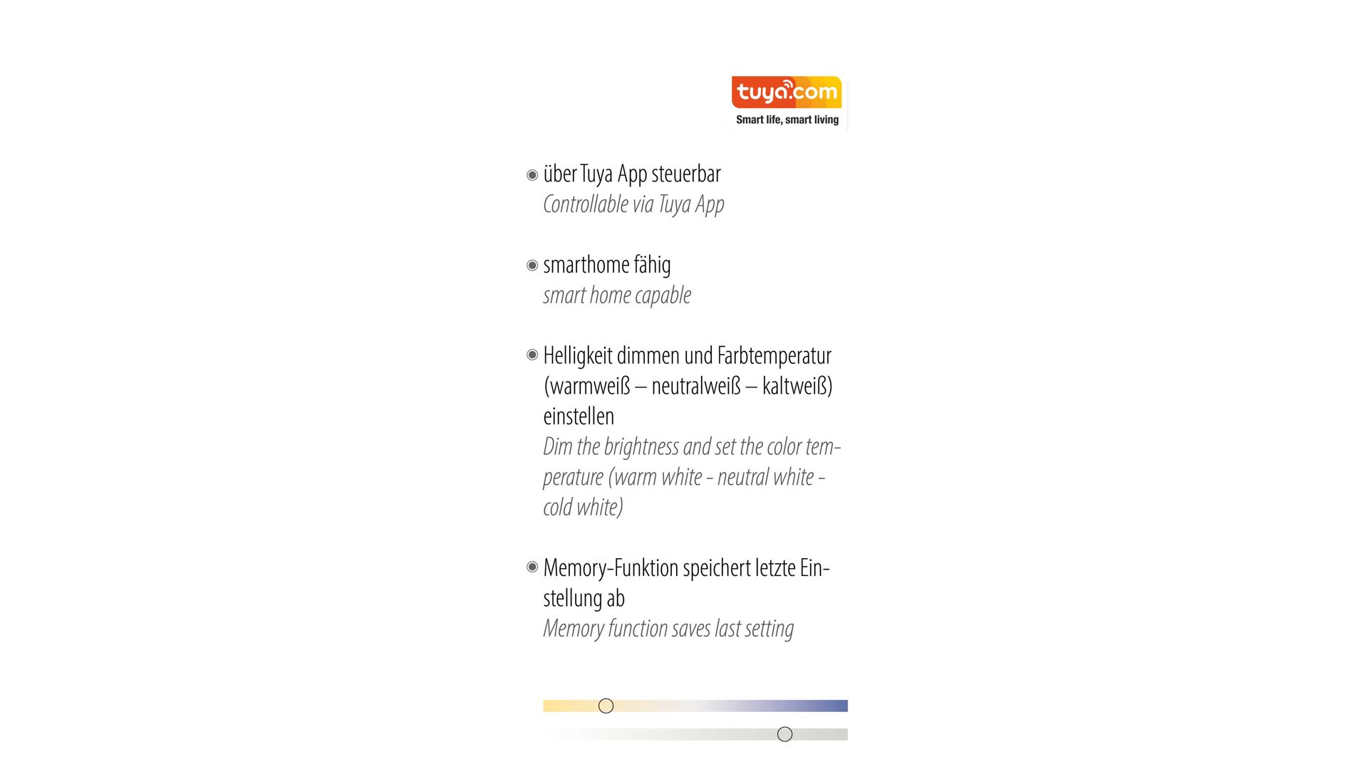von warmweiß bis kaltweiß wechselbare Farbtemperatur