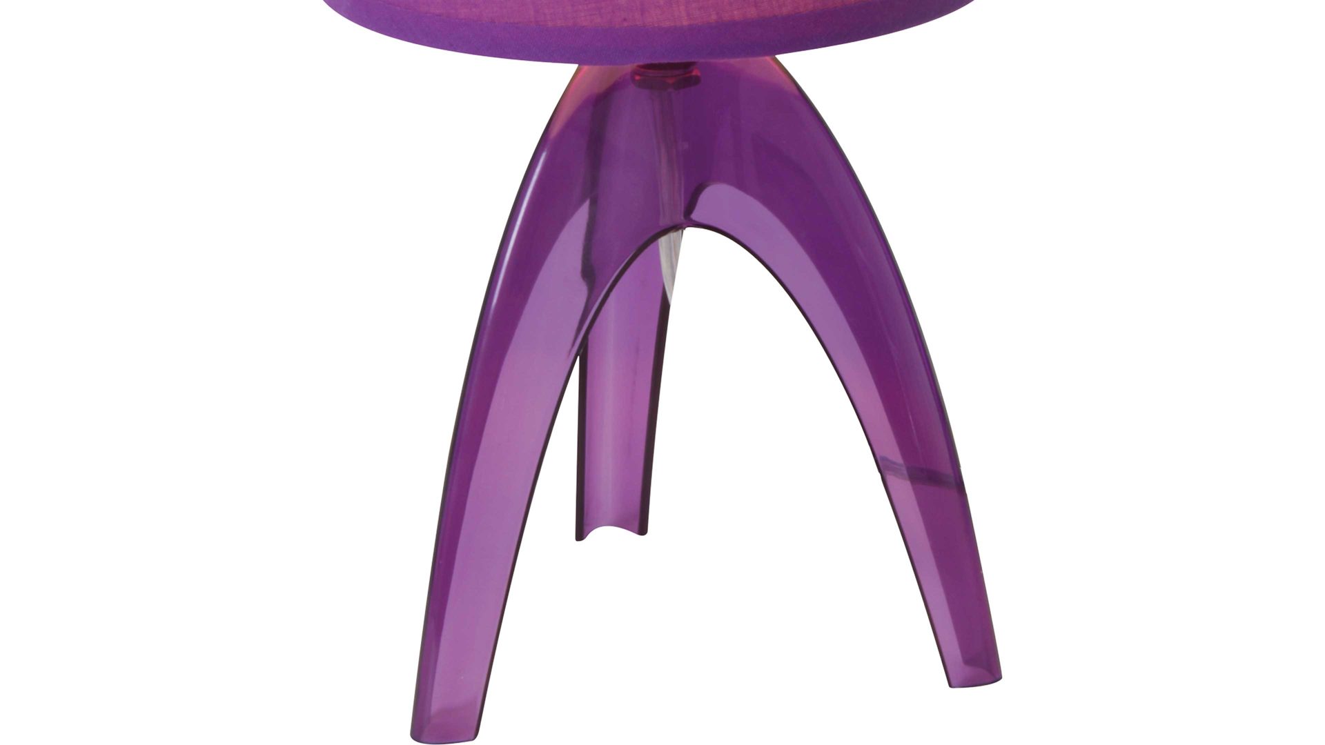 Sie kombiniert einen großen Lampenschirm aus feinem Textil mit einem Gestell aus robustem Acrylglas, das für die nötige Stabilität sorgt. Optisch präsentiert sich die top verarbeitete Lampe in einem warmen Lila. Durch die spezielle, auffällige Farbgebung bringt die Leuchte peppiges Flair in den jeweiligen Raum und zieht die Blicke auf sich.