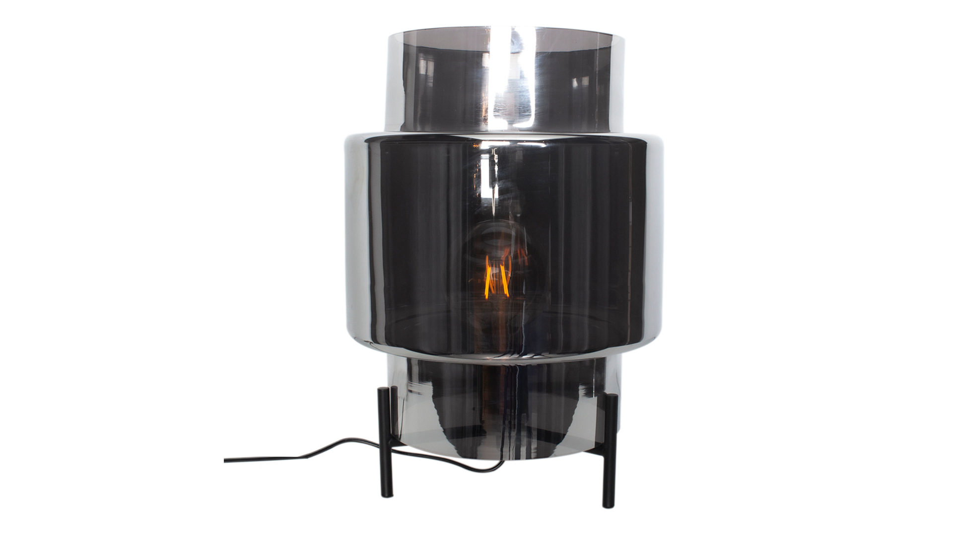matt schwarzes Metall kombiniert mit rundem Lampenschirm aus Rauchglas