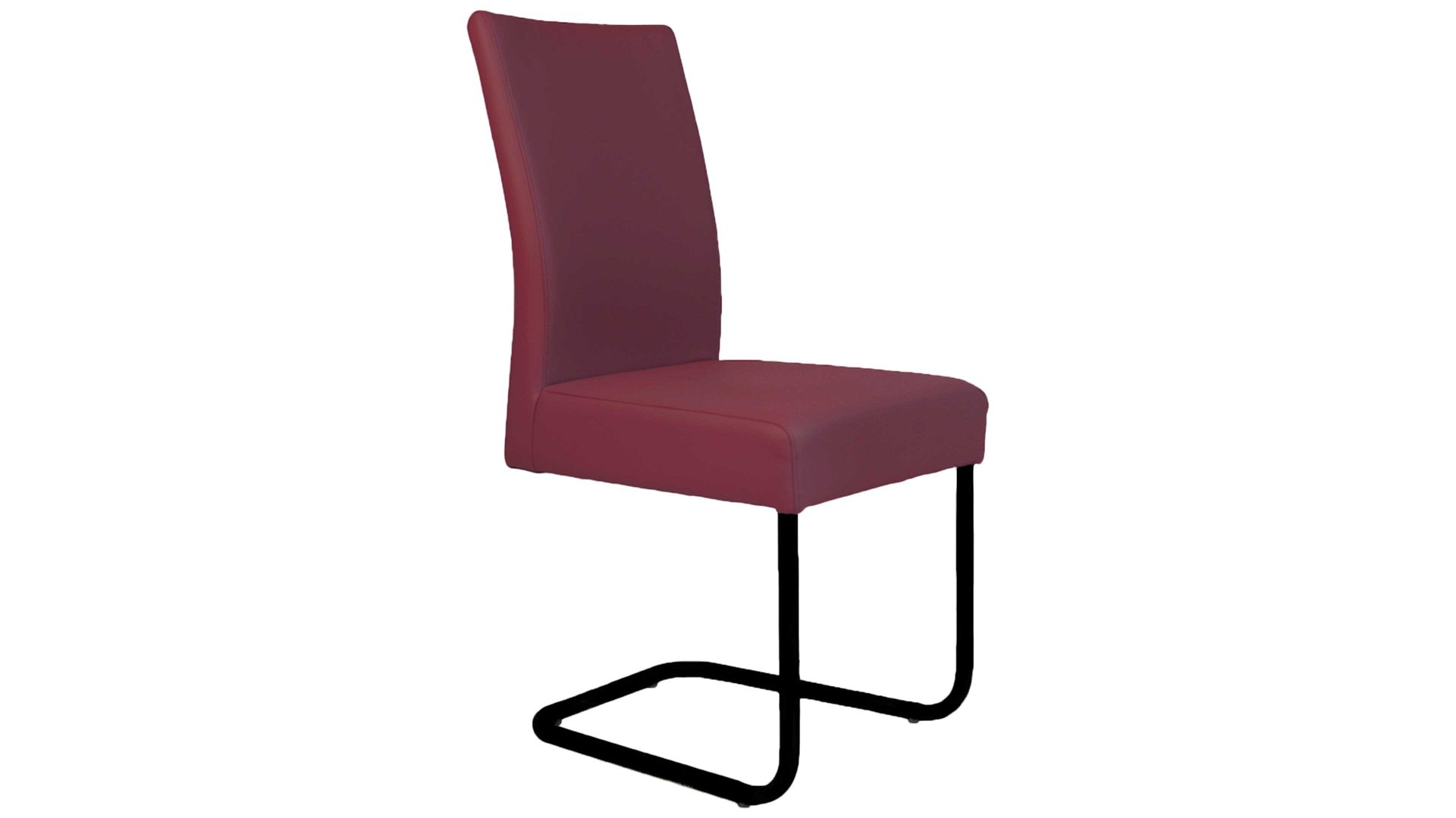 Der bequeme Esszimmerstuhl überrascht neben einem hohen Sitzkomfort mit einer ansprechenden Optik. Denn der Freischwinger besticht insbesondere durch den rubinroten Lederbezug und dem Edelstahlfuß aus Flachstahl, der sich mit einer gebürsteten Oberfläche präsentiert. Dank dieser Materialauswahl wirkt das Sitzmöbel ohne Armlehnen besonders modern.