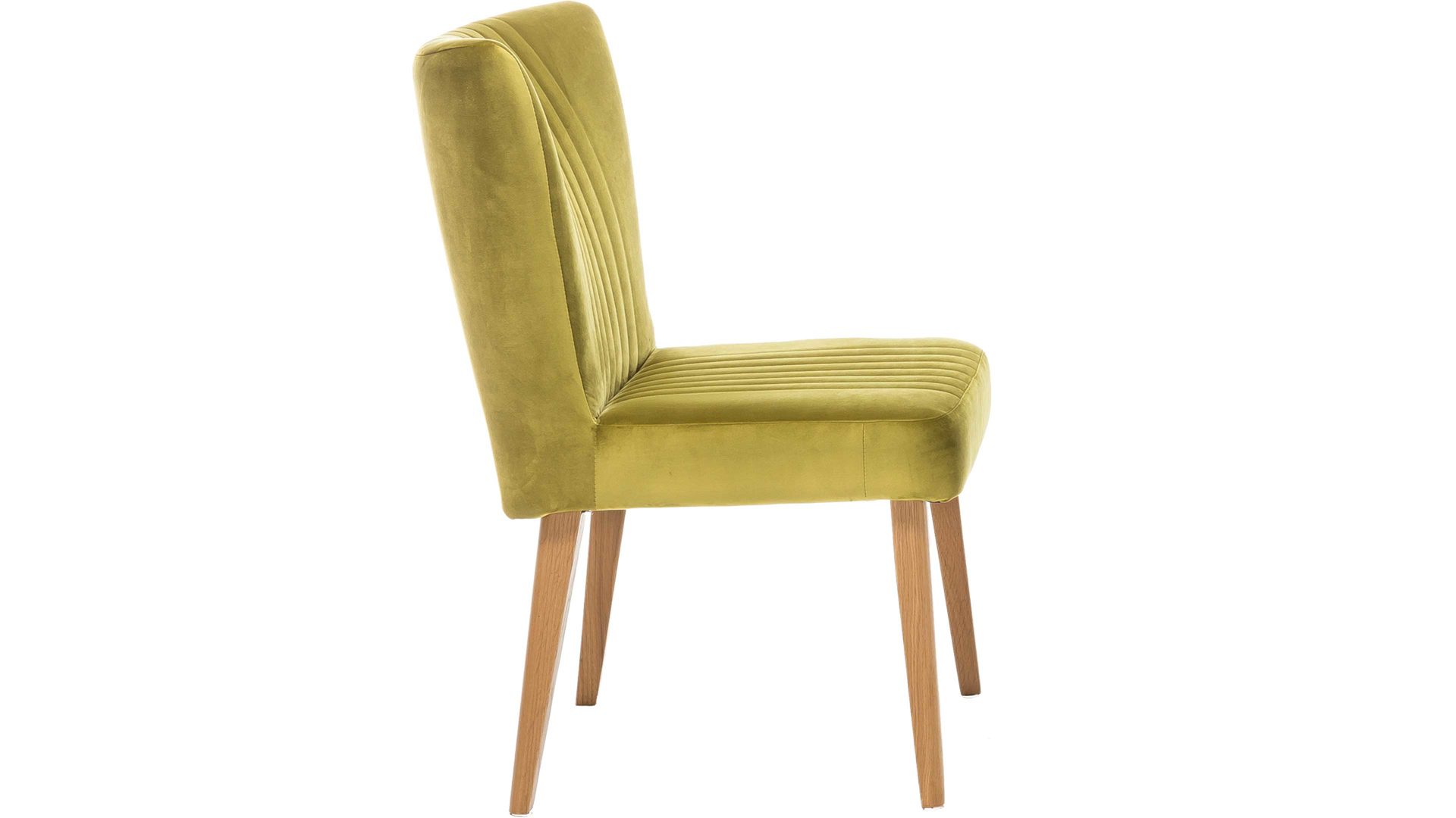 In Olivgrün und mit einem weichen Bezug im Samtlook ist dieser hochwertige Polsterstuhl ein schickes farbliches Highlight. Ob als Flurmöbel, im Gästezimmer oder als Schlafzimmermöbel. Pfiffige Steppnähte, die auf Sitz und Rücken angebracht sind, verleihen diesem Sitzmöbel eine geschmackvolle Note. Gleich zu mehreren macht der funktionale Polsterstuhl mit den Maßen von ca. 46 x 92 x 66 cm (BxHxT) an einem Esstisch aus Eiche eine gute Figur, denn das Holzgestell des Modells besteht ebenfalls aus Eiche natur.