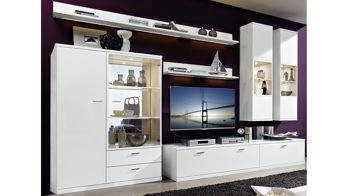 Funktionale Highlights sind der gedämpfte Frontenanschlag und der Softeinzug aller Schubladen, der ein angenehm leises Schließen ermöglicht. Gegen Mehrpreis erhalten Sie einige Wohnmöbel der Kombination mit energieeffizienter Beleuchtung. Durch den Typenplan mit einer großen Farb- und Typenauswahl können Sie das genaue Design der Wohnwand individuell an Ihren Geschmack anpassen. Auch weitere Artikel der Serie stehen Ihnen zur Verfügung - für ein rundum harmonisch eingerichtetes Wohnzimmer. Diese Elemente finden sie über die Produktnummer 483582-010.