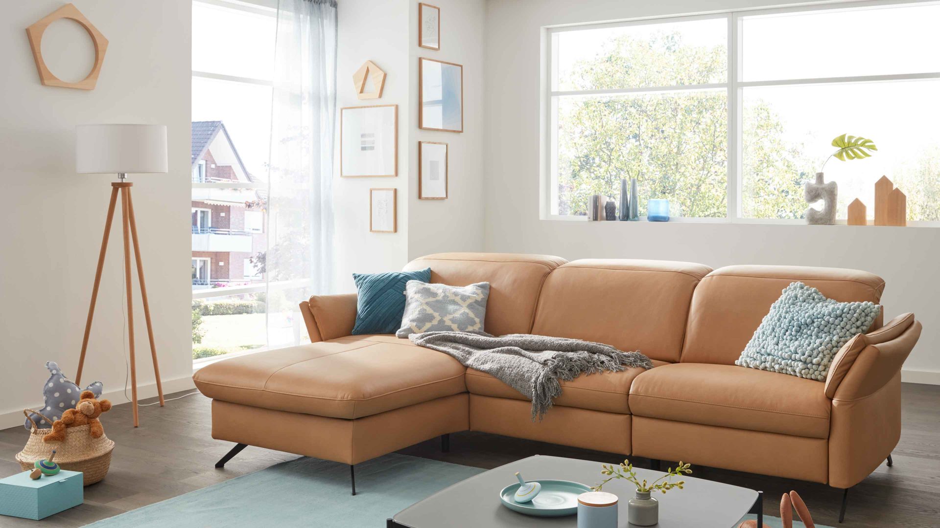 • Die Abbildung zeigt ein Wohnbeispiel, welches auch Dekoration sowie separat erhältliches Zubehör enthält. Im Lieferumfang enthalten ist eine Liegefunktion MoLi.