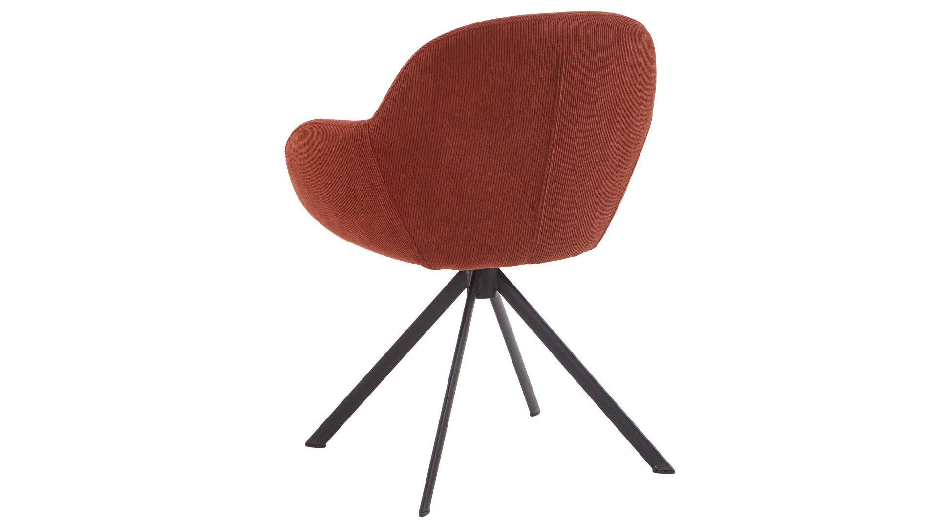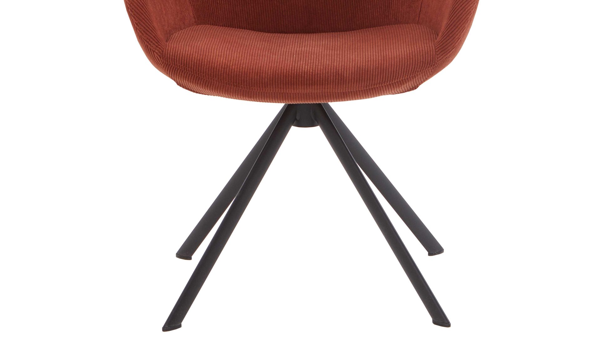 Der hochwertige NIEHOFF Armlehnstuhl Dacapo verkörpert moderne Eleganz und Gemütlichkeit. Mit dem mattschwarz lackierten Stativgestell aus robustem Eisen sowie dem trendigen kupferfarbenen Cordbezug überzeugt er sowohl optisch als auch qualitativ. Dank der Ergo-Schale mit Formschaum bietet der Designerstuhl für das Esszimmer extra hohen Sitzkomfort.