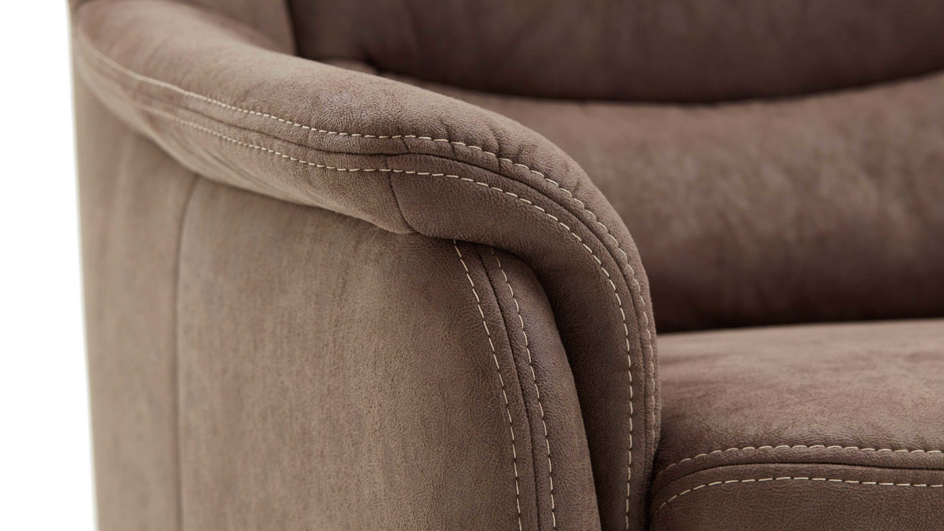 elephantfarbener Mikrofaserbezug mit Prägung und sandfarbener Kontrastnaht