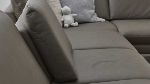 die Rückenlehne lässt sich durch leichtes Anheben nach vorn ziehen und verändert so die Sitztiefe um bis zu 15 cm