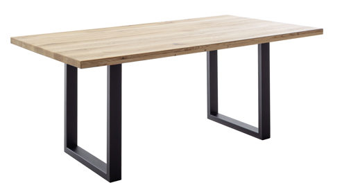 Wildeiche & schwarzes U-Metallgestell, gerade Kante - ca. 200 x 100 cm